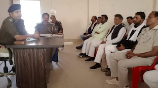 प्रभारी निरीक्षक श्रीधर पांडेय ने कहा कि डीजे बजाने की मनाही है।शांति का परिचय देते हुए पर्व मनाना है।साथ ही सभी ग्राम प्रधानों का विधान सभा चुनाव को थाना क्षेत्र में बिना विवाद के सकुशल सम्पन्न कराने में पुलिस का सहयोग करने में धन्यवाद ज्ञापित किये।इस अवसर पर फिरोज अंसारी,रामप्रवेश प्रजापति,अनिरुद्ध यादव,सुरेंद्र यादव,नरेंद्र सिंह सहित दर्जनों ग्राम प्रधान उपस्थित रहे।